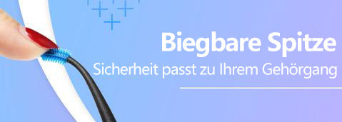 Weiche Silikonborsten sind die neue Lösung, um Ohrenschmalz und Schmutz von Ihren Ohren zu entfernen, ohne die Haut Ihrer Gehörgänge zu beschädigen!