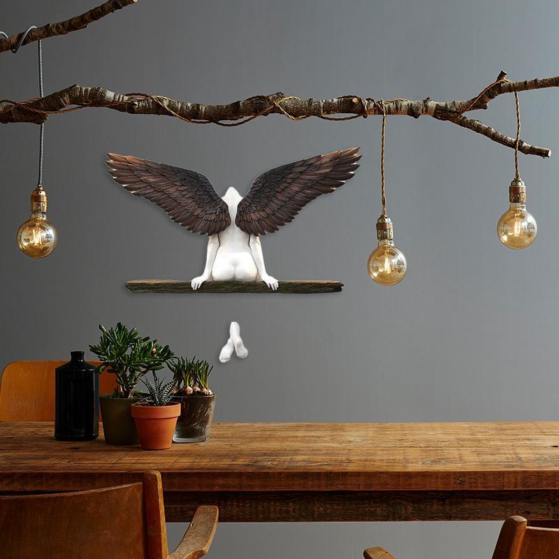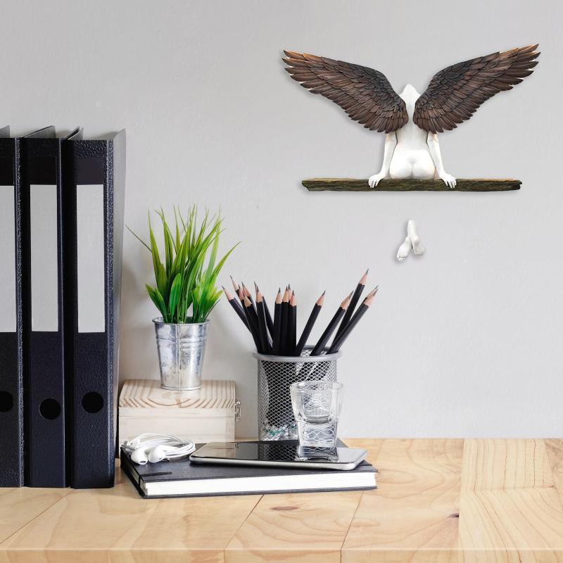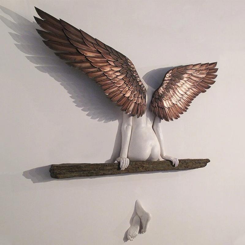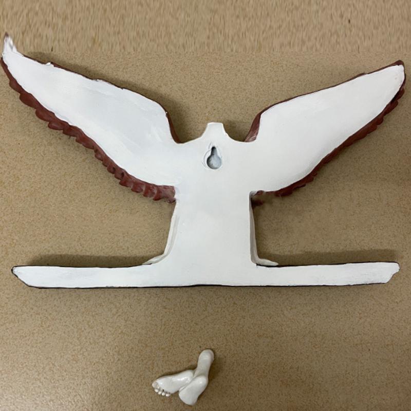 • Komposition: Die Wandskulptur besteht aus vier Teilen: einem menschlichen Körper, Flügeln, einem horizontalen Sitz und einem Paar Füße.