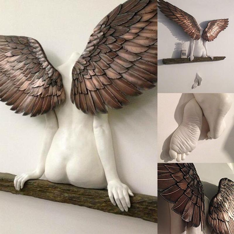 • Erstaunliche 3D-Modell-Wandskulptur: Es ist eine Mischung aus traditionellen und fortschrittlichen Herstellungstechnologien. Das 3D-gedruckte Teil sind die sehr zahlreichen Flügelfedern, die mit einer schönen Kupferfurnier-Patina beschichtet sind.
