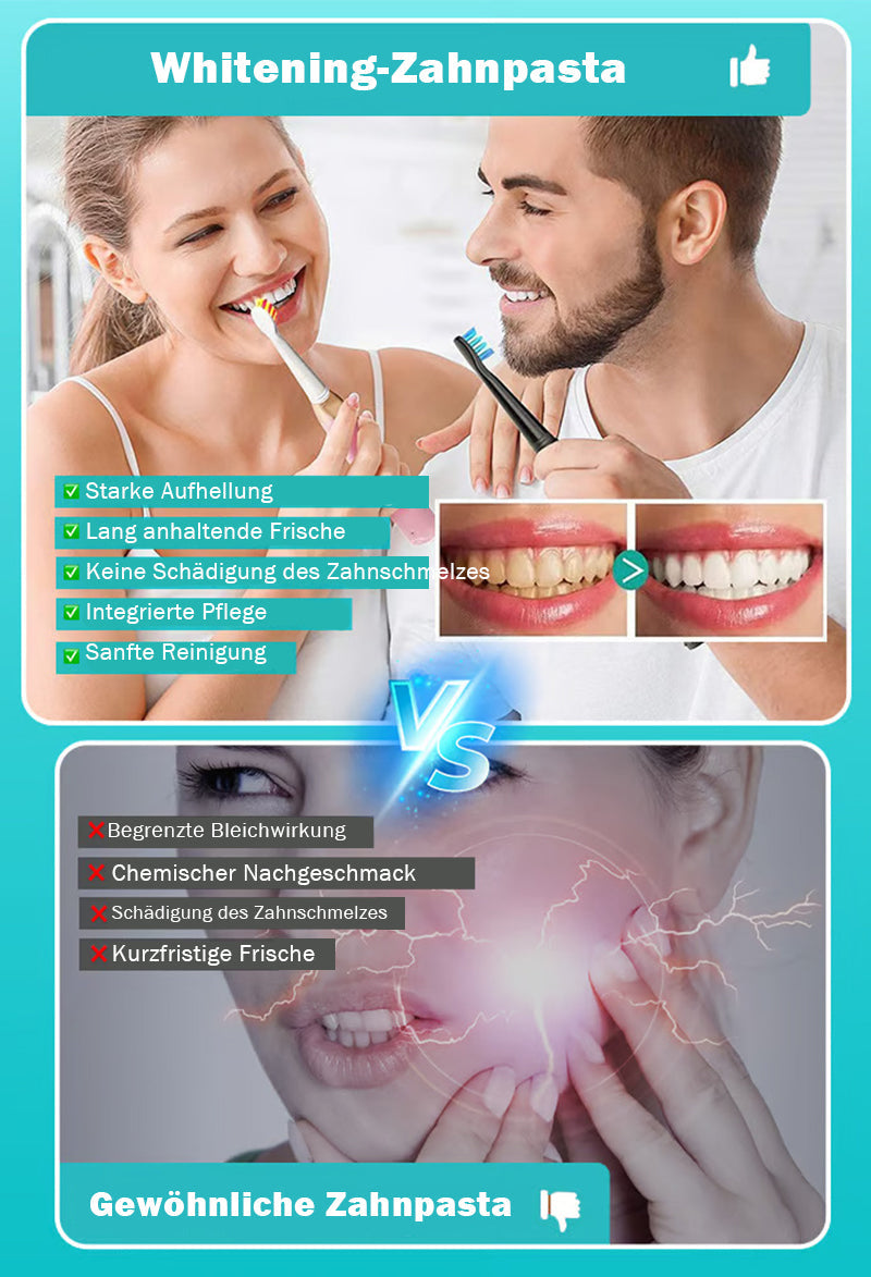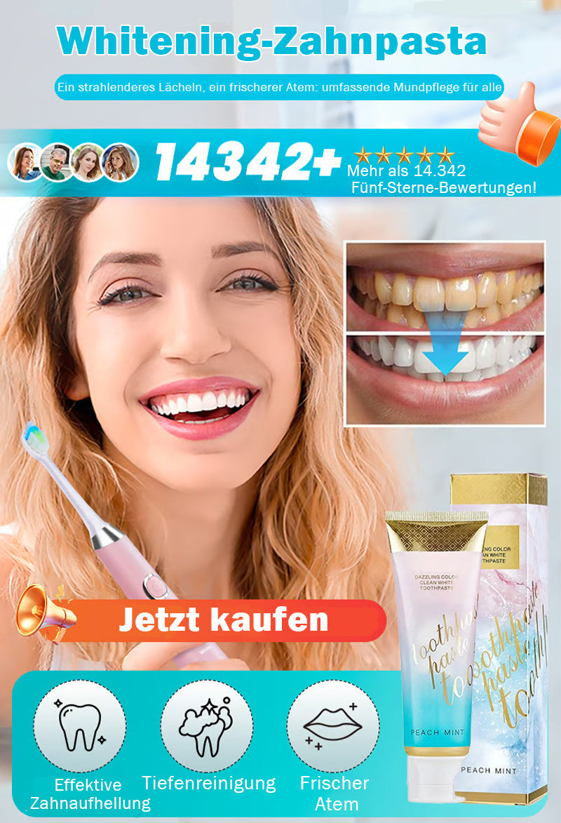 Diese Zahnpasta kombiniert Aufhellung, Fleckenentfernung und langanhaltende Frische, um Ihnen ein frisches, selbstbewusstes Lächeln zu verleihen.