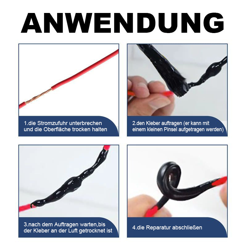 • Dieses aufzutragende Flüssigklebeband auf Gummibasis bildet eine schützende, wasserdichte und UV-beständige dielektrische Dichtung um gespleißte Elektrokabel, um vor Korrosion, Kurzschlüssen, Stromschlägen und Vibrationen zu schützen. Die schnell trocknende Flüssigkeit härtet innerhalb von 24 Stunden aus und wird im Gegensatz zu herkömmlichem Klebeband nicht beschädigt oder franst nicht aus.