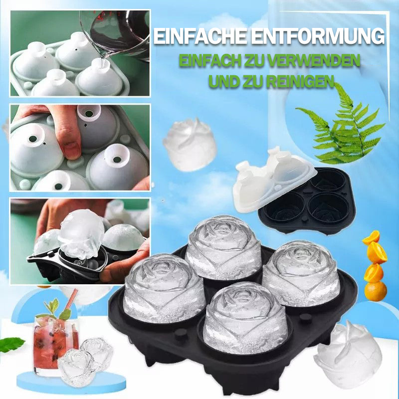 4 große Eiswürfelformen in Rosenform, kann für gekühlte Getränke, Whisky, Cocktails und mehr verwendet werden, mehr Dekoration, schöner, mehr Spaß! Langsam und gleichmäßig schmelzen.