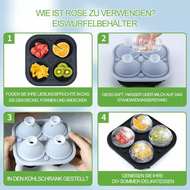 Sie können 4 extra große Eiswürfel in Rosenform auf einmal zubereiten, die langsamer schmelzen und Ihre Getränke länger kalt halten.