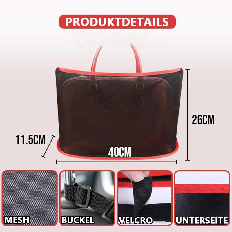 Mit dem Car Net-Taschenhandtaschenhalter können Sie zusätzliche Gegenstände wie Taschen, Dokumente, Telefone oder wertvolle Gegenstände aufbewahren, die Sie am dringendsten benötigen, um sie übersichtlich und leicht erreichbar zu halten.