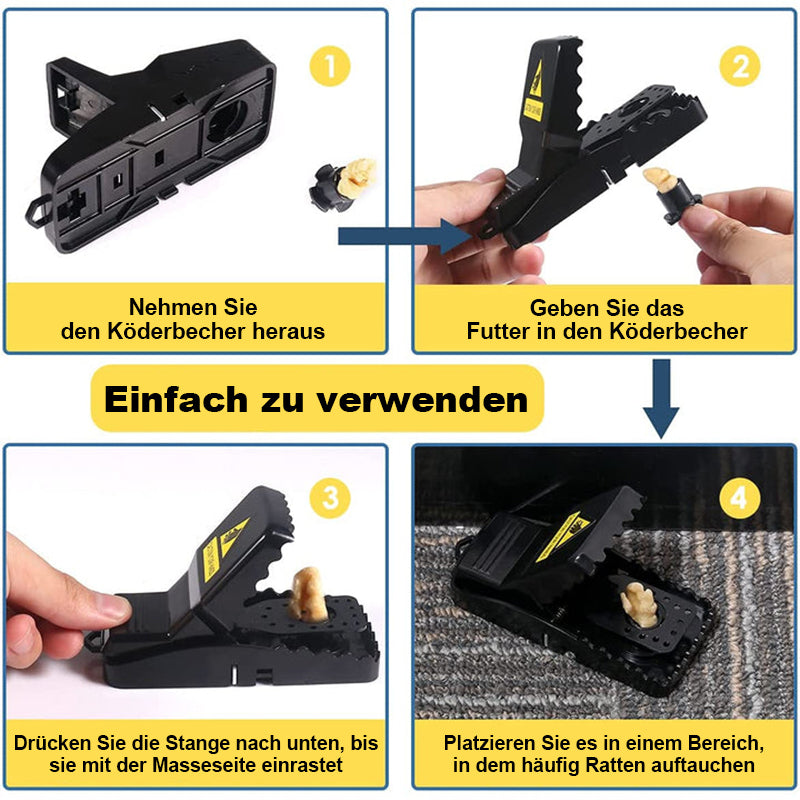 - 4. Sichere Verwendung - Diese Art von Mausefalle ist sehr sicher zu verwenden, sodass Sie sich keine Sorgen machen müssen, dass Ihre Finger verletzt werden.