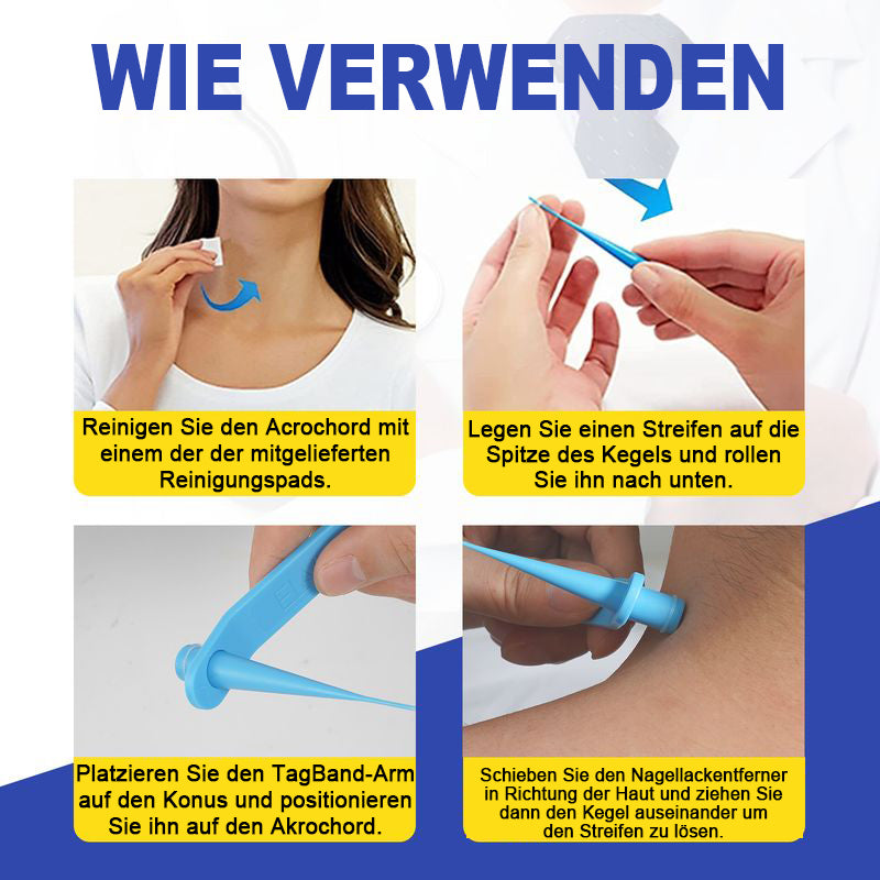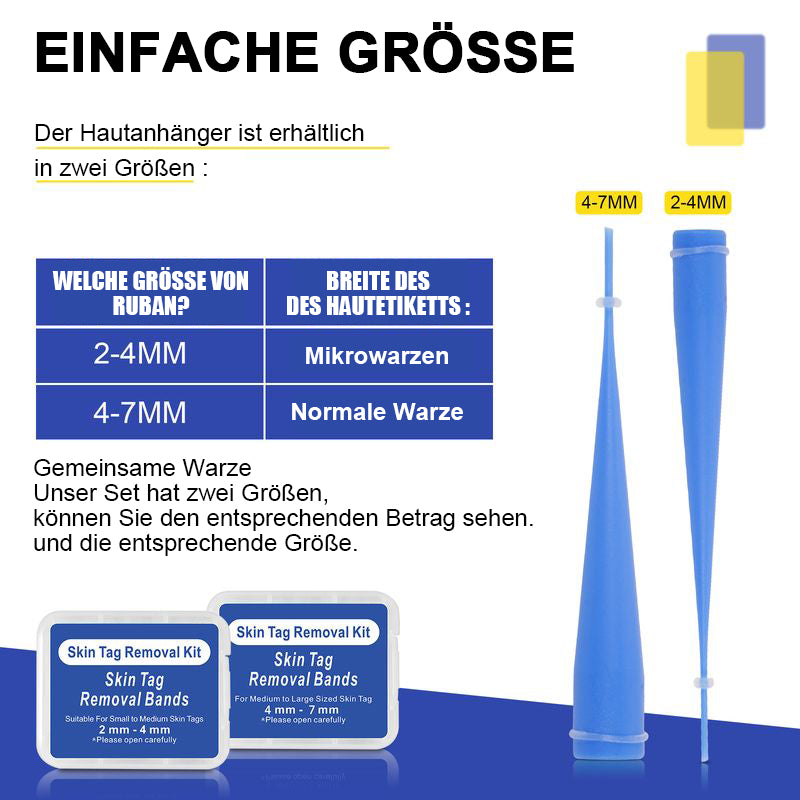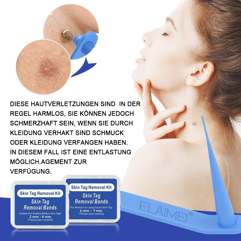 • Sicher und schmerzlos: Das Hautanhängsel-Entfernungsset trocknet Hautanhängsel durch Einschränkung der Blutzufuhr. Nach dem Tragen der Bänder, warten Sie. Ihre Hautanhängsel werden in 3-14 Tagen abfallen (bei größeren Hautanhängseln kann mehr Zeit erforderlich sein).