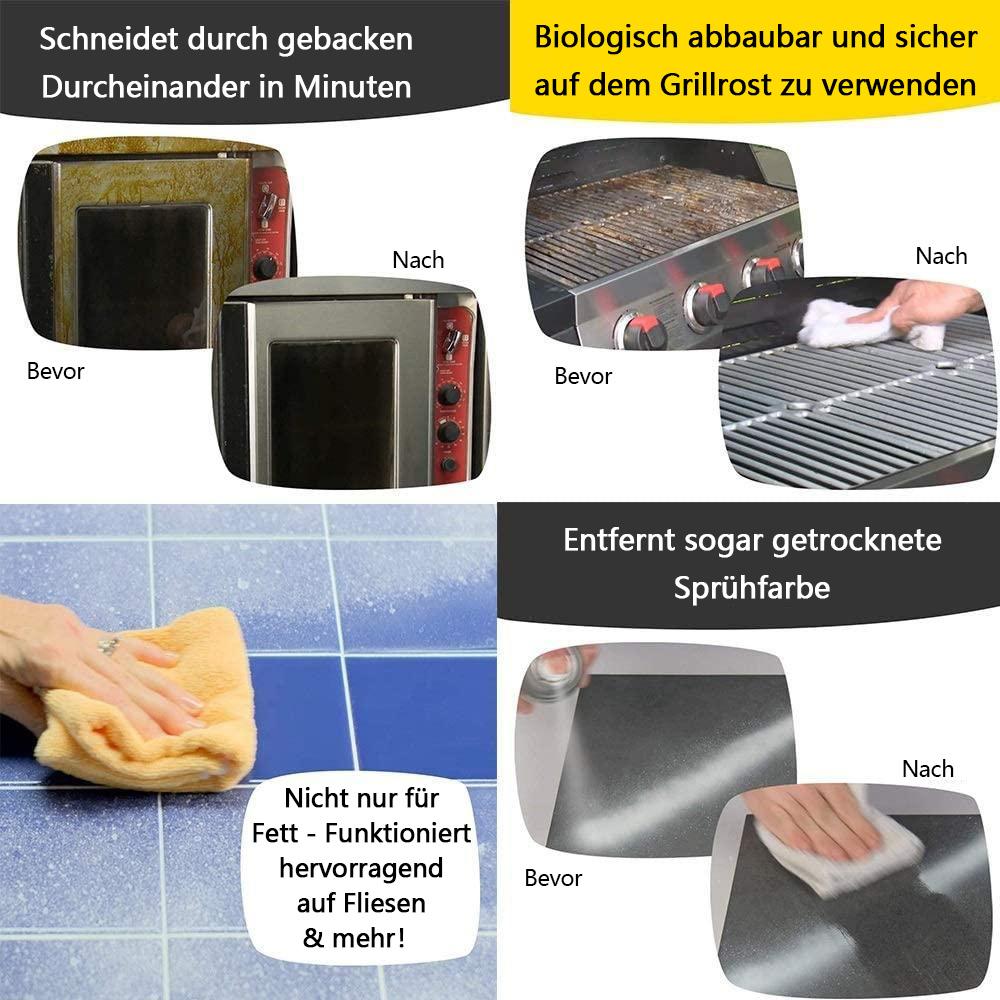 Entfernen Sie lästiges Fett und Flecken einfach mit dem Magic Degreaser Cleaner. Geeignet zur Verwendung auf Stoffen, Leinwand, fertigem Leder, PVC, Glas, Vinyl, Kunststoffen, Gummi, Metallen, Gelcoats und Fiberglas. Dies ist ein Mehrflächenreiniger mit einem durchdringenden Schaum. Sprühen Sie ihn direkt auf eine beliebige Oberfläche und wischen Sie ihn mit einem trockenen Tuch ab. Es muss nicht abgespült werden und ein sauberes Ergebnis ist sofort sichtbar! Er entfernt wirksam Fett, anhaftenden Schmutz, Staub, Fingerabdrücke und alle unerwünschten Flecken auf allen Oberflächen und hinterlässt ein nicht fettendes, mattes Finish, das bis zu 3 Monate halten kann.