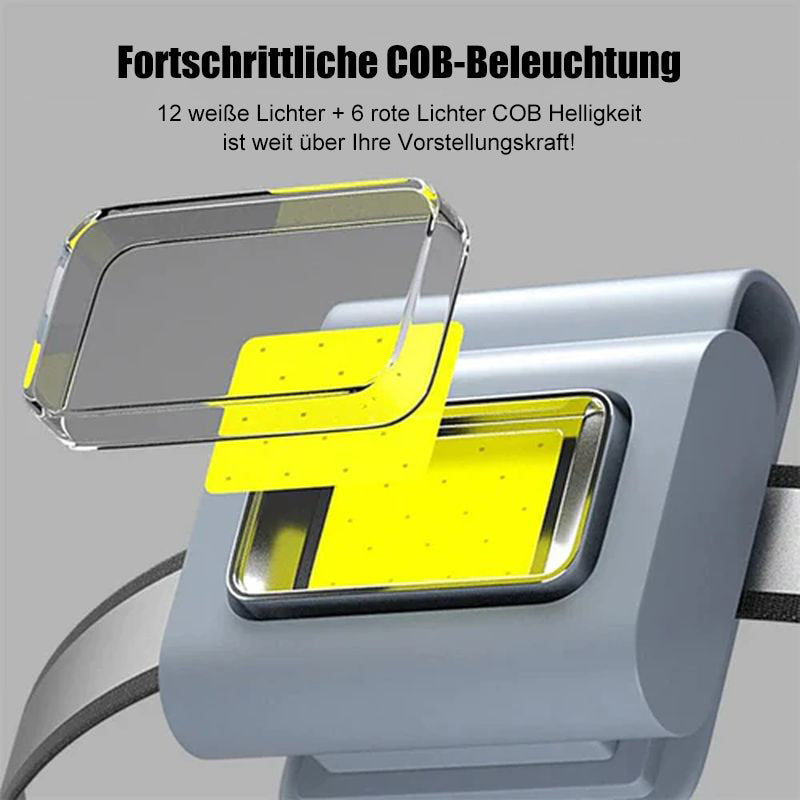 - 6 Lichtmodi – 6 Taschenlampenmodi können Ihren unterschiedlichen Anforderungen gerecht werden: COB-High-Modus, COB-Low-Modus und COB-Strobe-Modus. Drücken Sie den Netzschalter 2–3 Sekunden lang, um die maximale Helligkeit zu erreichen.