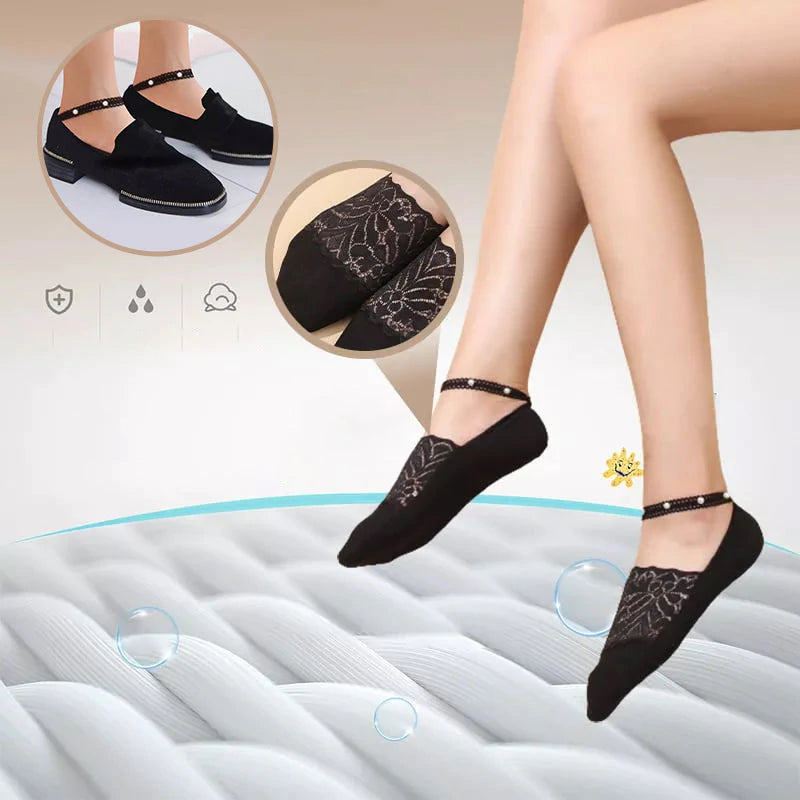 Unsere Perlenspitzensocken sind atmungsaktiv, unsichtbar, schweißableitend und geruchsabweisend für Komfort und Kühle!