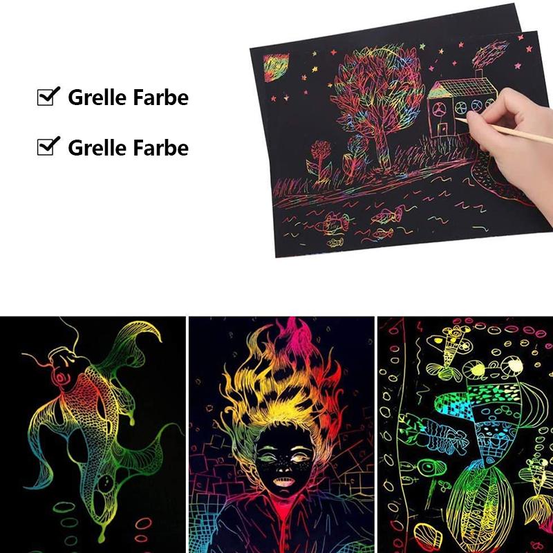 • ✍️SKRATZPAPIER FÜR PAPIER: Verwenden Sie den Kratzer, um die schwarze, matte Oberfläche des Papiers abzukratzen und den Hintergrund freizulegen. Eine ausgezeichnete Kunsthandwerksaktivität für Kinder oder erwachsene Künstler