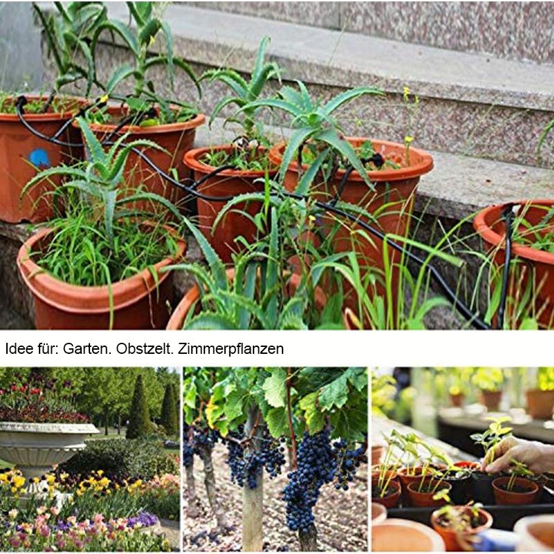- Breite Anwendungen: Ideal für Blumen, Pflanzen, Bonsai und Topffrüchte, Tropfbewässerung auf der Terrasse. Ein perfektes Gartenbewässerungsset für Familienhäuser, Hotels, Clubs, Büroterrassen, Gewächshäuser, Gärten, Rasenflächen und andere Pflanzen intelligenter Pflege.