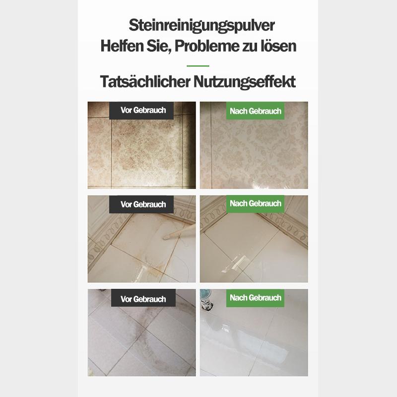- Kein starkes Reiben oder Spülen erforderlich! Tragen Sie das Pulver einfach auf den Fleck auf. Es absorbiert alle Flecken auf der Oberfläche von Naturstein, einschließlich Granit, Marmor, Kalkstein, Schiefer, Travertin, Terrakotta, Speckstein, Schiefer und Beton! Es kann sogar Schimmelflecken aus dem Fugenmörtel aufnehmen!