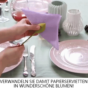 - Machen Sie das Abendessen für Ihre Familie mit diesem Bloom-Serviettenordner noch perfekter. Verwandeln Sie jede Papierserviette in eine Rose, eine Rosenknospe, eine Tulpe oder eine elegante Calla-Lilie. Sie brauchen keine Fachkenntnisse im Serviettenfalten; nehmen Sie einfach eine beliebige Serviette, falten Sie sie nach Vorschrift, stecken Sie sie in einen Blütenhalter und drehen Sie den Stiel schnell.