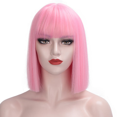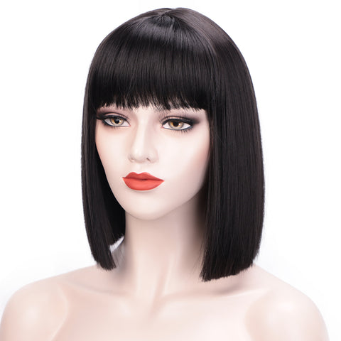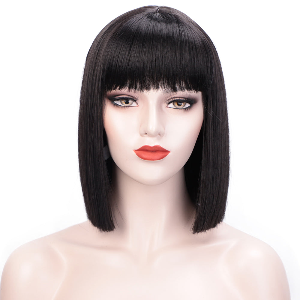 • Perückentyp: Volle Maschine, kurze, gerade Bob-Perücke mit ordentlichem Pony in einer Vielzahl von Farben, Perückenlänge beträgt 12 Zoll, Pony kann entsprechend Ihrer Gesichtsform getrimmt werden.