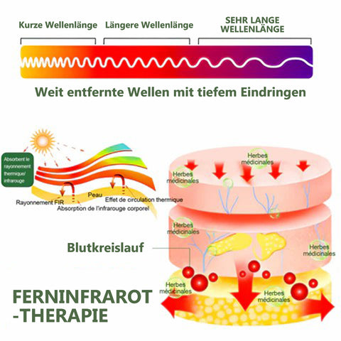 Ferninfrarot ist ein Bereich des Infrarotspektrums elektromagnetischer Strahlung. Ferninfrarotstrahlen können 16 mm des menschlichen Unterhautgewebes durchdringen , was bedeutet, dass sie tiefes Muskelgewebe, Sehnen, Nerven, Blutgefäße und Bänder durchdringen und dabei helfen können, beschädigte Zellen zu reparieren, Mikrogefäße zu vergrößern, die Durchblutung zu fördern, Enzyme zu aktivieren und den Stoffwechsel zu beschleunigen Blut und Zellgewebe. Dies geschieht durch die Erwärmung des Körpers und die Anregung von Puls und Aktivität, auch wenn Sie nicht trainieren. Außerdem regt es die Durchblutung, den Kreislauf und die Produktion von Enzymen und Hormonen an, die für die Fettverbrennung und den Gewichtsverlust unerlässlich sind.
