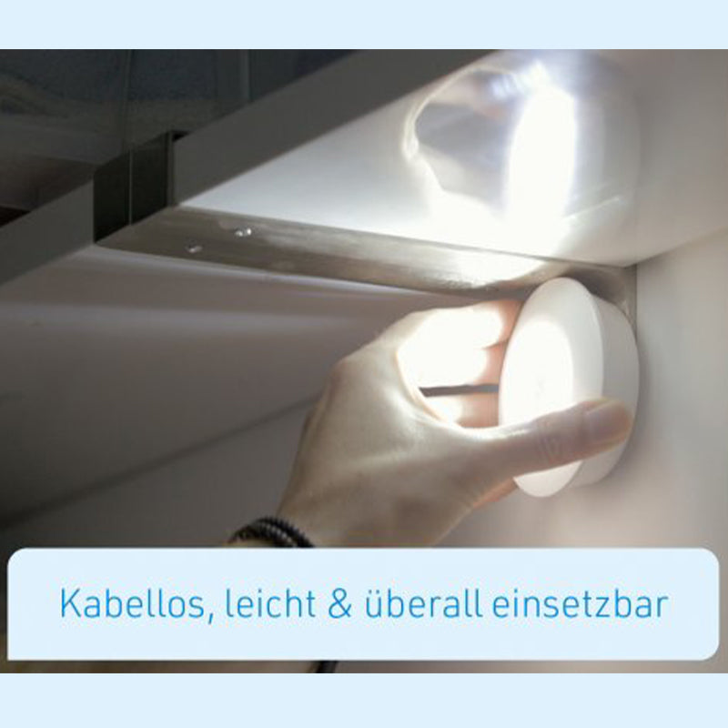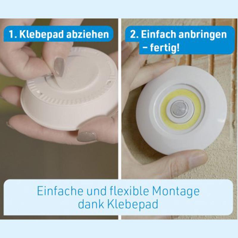 • Ohne Steckdose. Ohne Kabel. Ohne zu bohren. Ohne aufwendige Montage. Einfach Klebepad auf der Rückseite abziehen - Lampe anbringen - fertig!