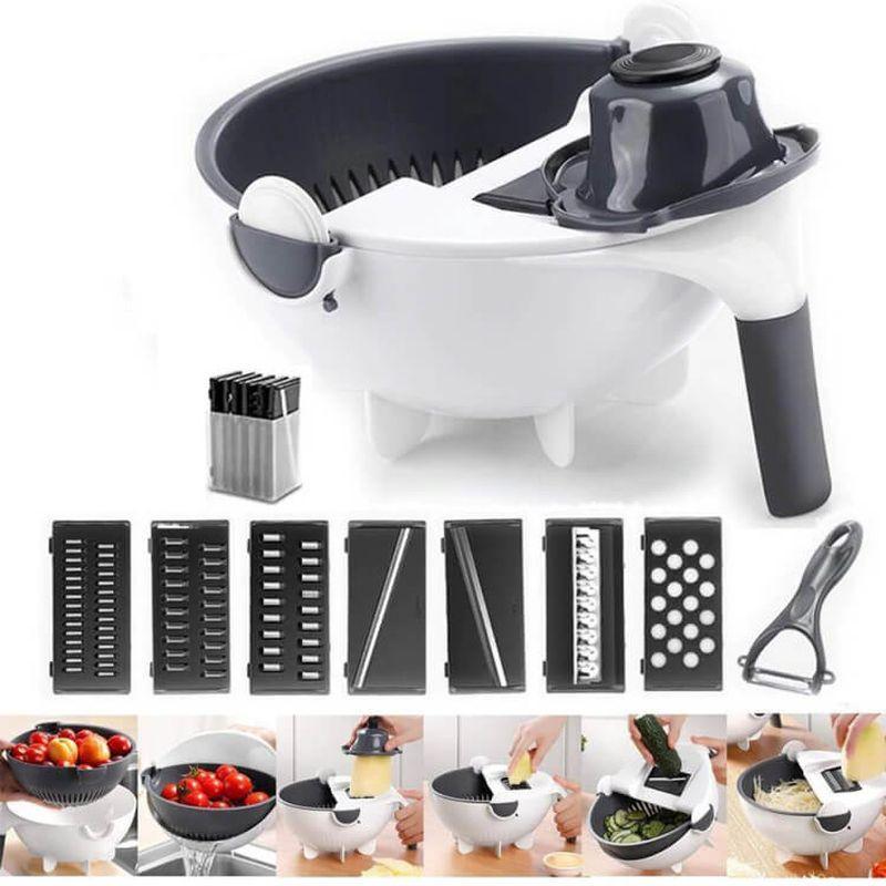 Multifunktionaler 9 in 1 Korb zum Abtropfen und Zerkleinern von Gemüse