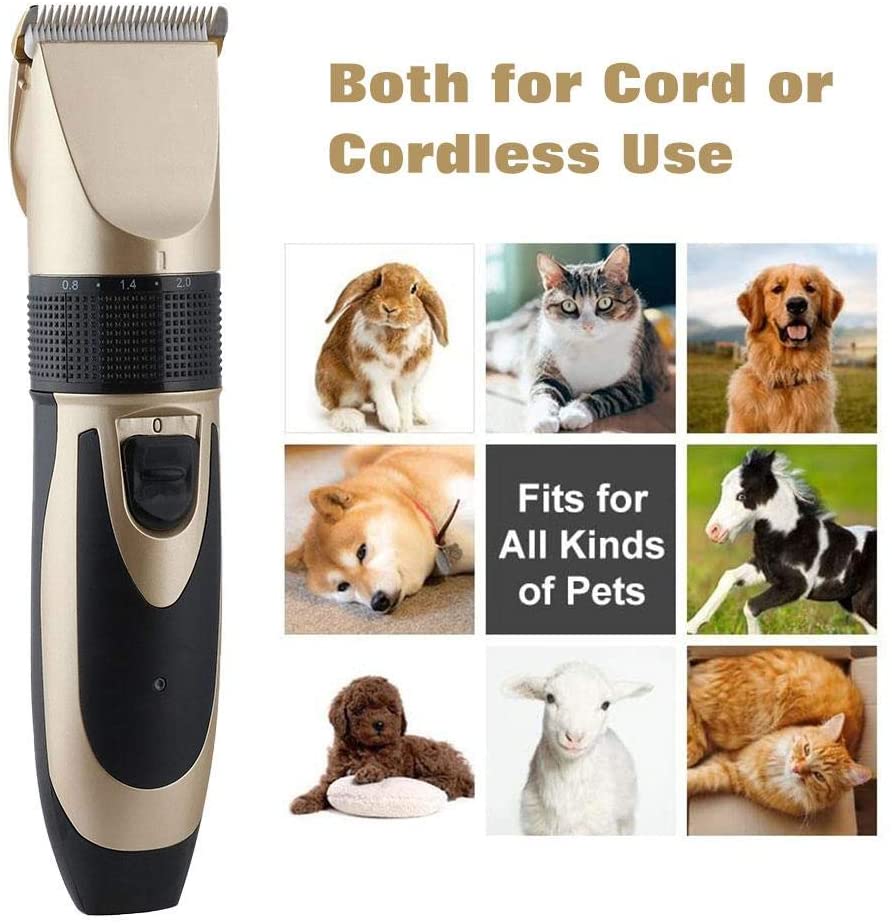 - NIEDRIGES GERÄUSCH: hunde schermaschinen der Leistungsstarke Motor mit dem stillen laufenden Design, dem niedrigen Vibrieren und den extremen ruhigen Arbeitsbedingungen, nur ungefähr 50 DB. Das niedrige Geräusch des Lieblingsklippers macht den Ausschnittprozess leichter und entspannter, ohne das Haustier zu erschrecken.