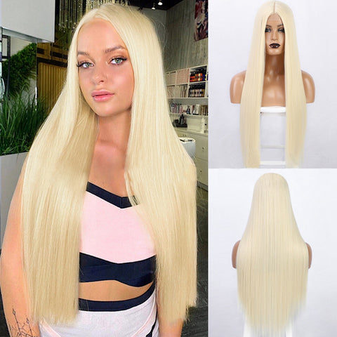 - Spitze Perücke weiblich mittlerer Teil lange gerade Perücke Kopf Set X 1