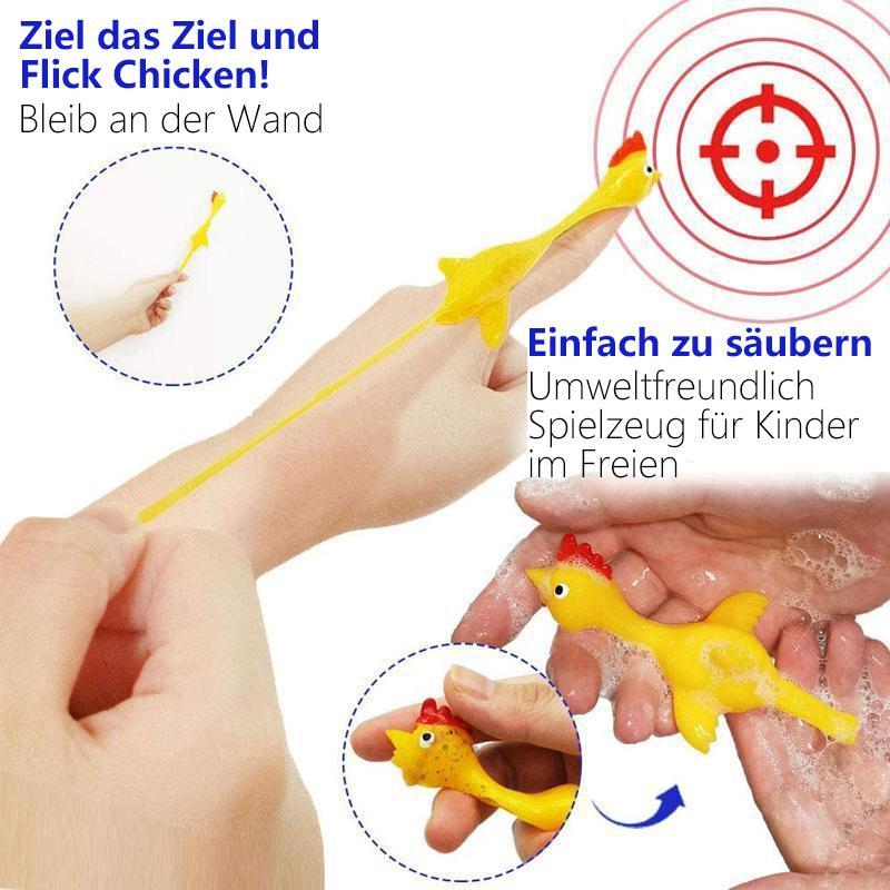 • Es ist ein sehr interessanter Prozess, Schleuderhühner im Büro, in der Küche oder im Garten im Freien fliegen zu sehen. Sie kleben an der Wand, an der Decke, sogar am Rücken Ihres Freundes, und fallen dann langsam ab. Perfekte Spiele im Freien und Party für Kinder und Jugendliche.